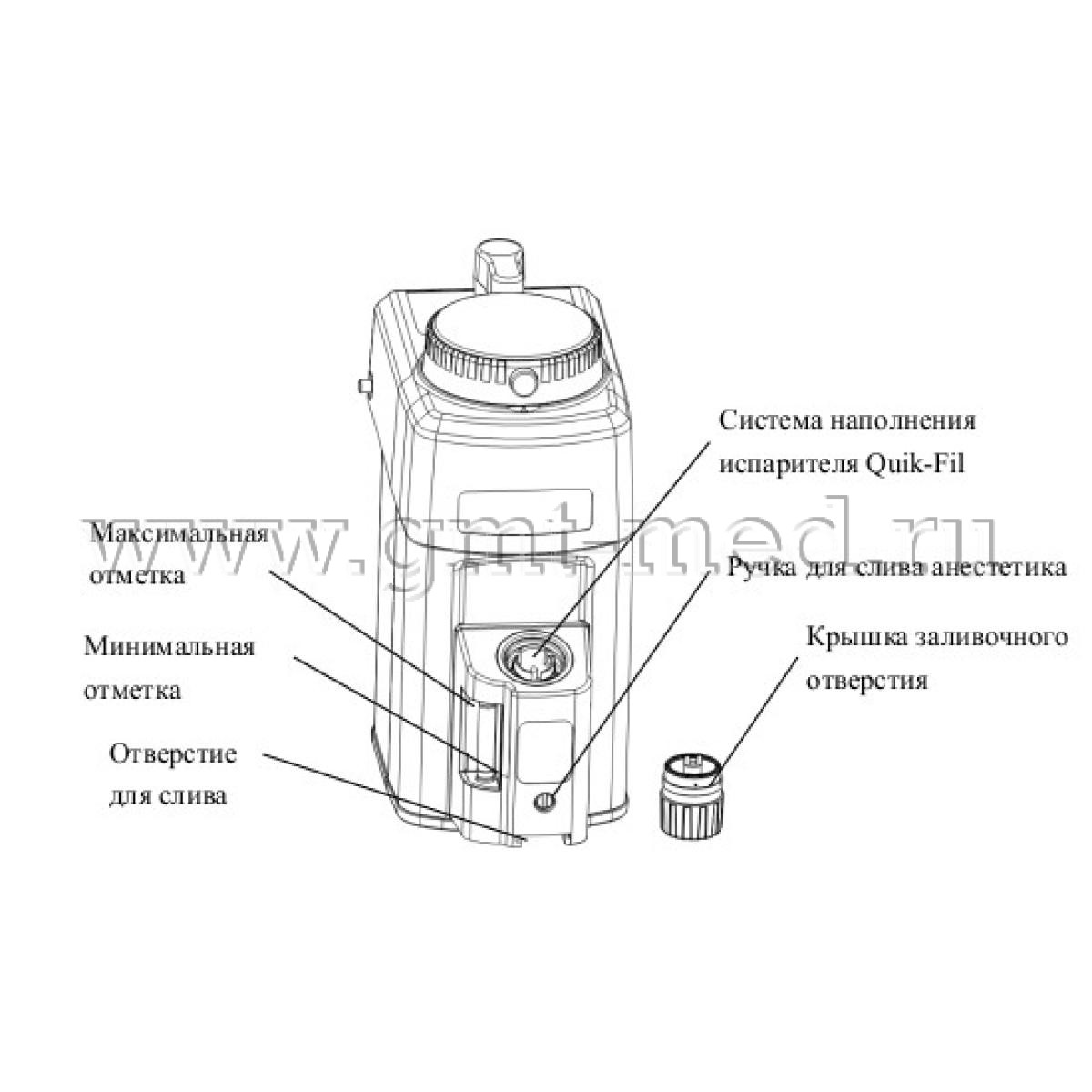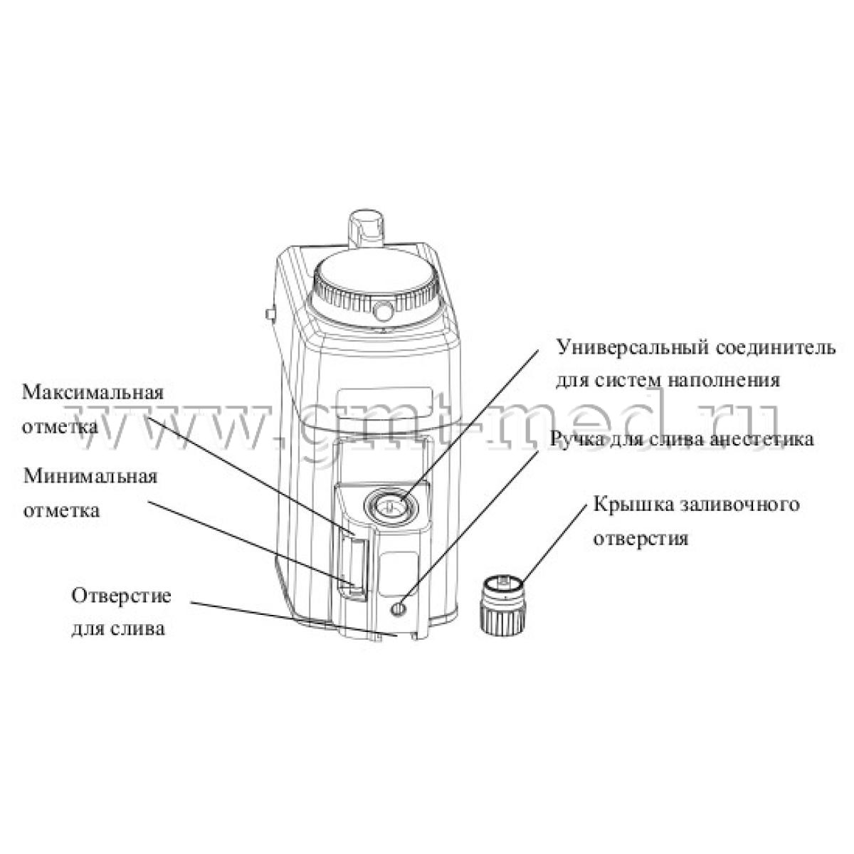 При выборе испарителя важно учитывать тип заливки и слива анестетика.